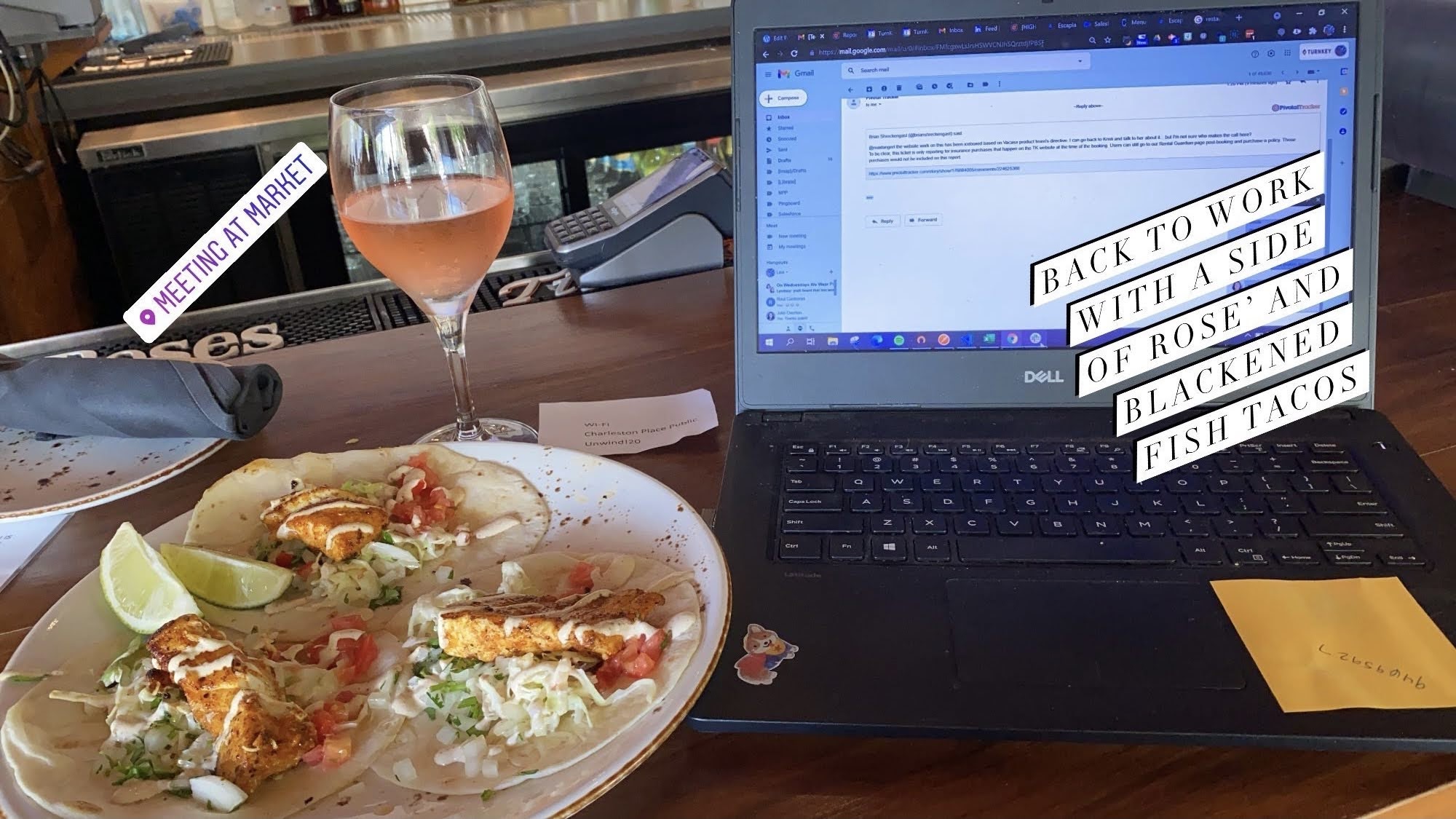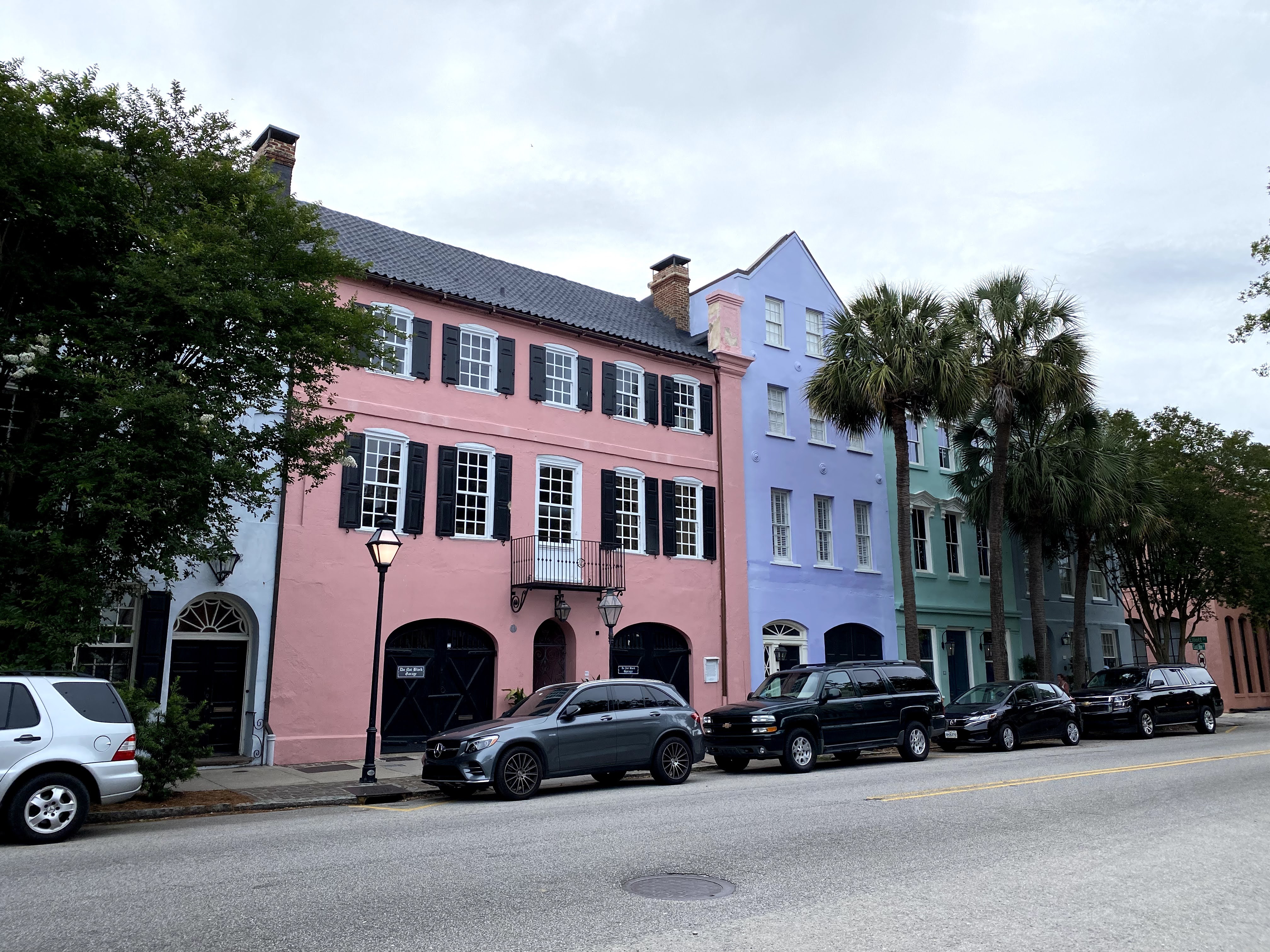 After working for a bit, it was time to find some food. I asked the valet guy outside my hotel for recommendations with Wi-Fi. He had recommended Meeting at Market for decent food. It took about 25 minutes to walk there from the hotel. I had the fish tacos and a glass of rose. The bartender was nice enough to hand me the wifi password and it wasn’t too busy on this Wednesday to even take a conference call with my boss. Once I finished up work, I opted to walk along the waterfront. It was a bit quiet for a Wednesday evening, but I did stumble upon Rainbow Row! I love the colorfulness of Charleston!