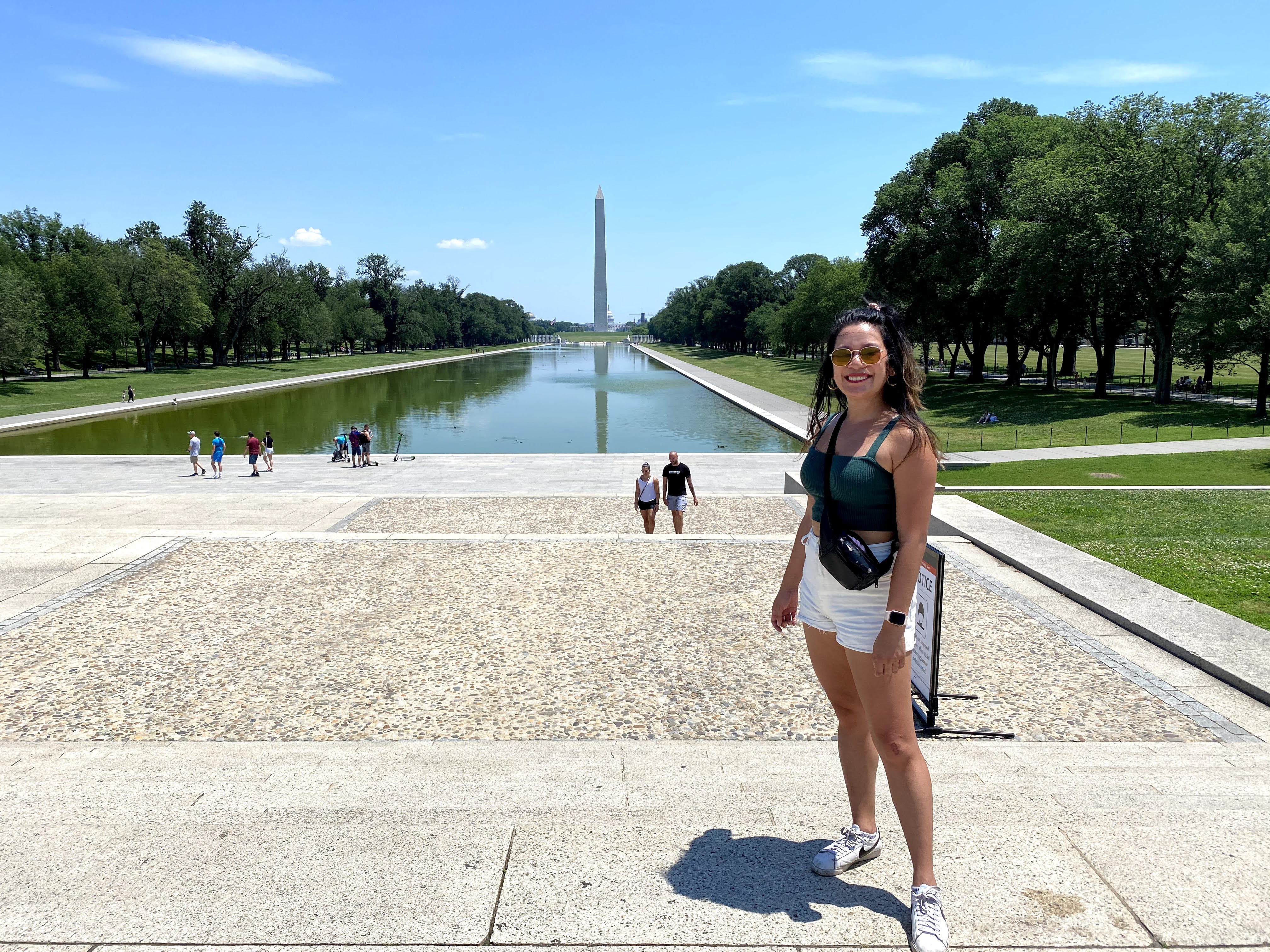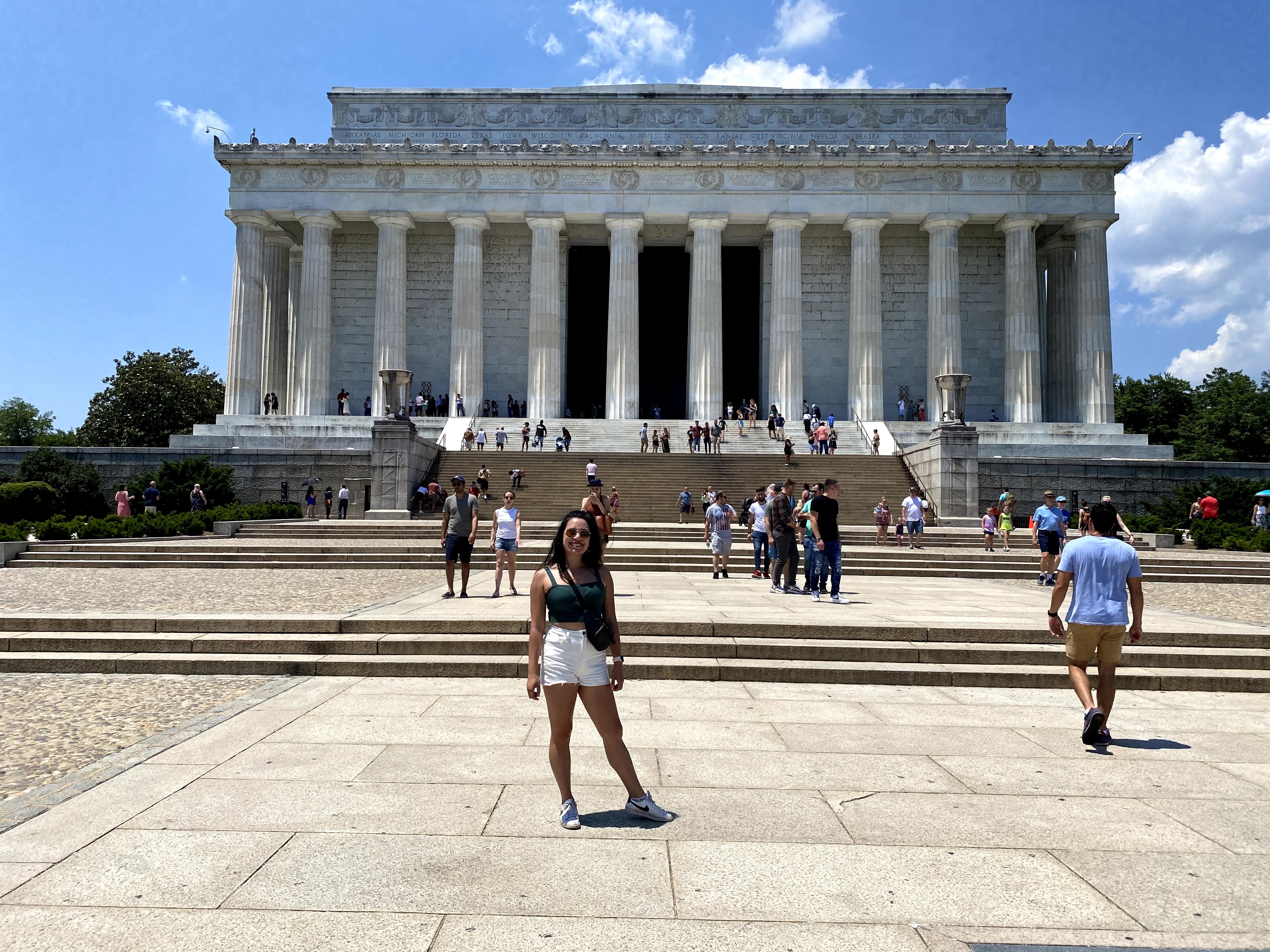 Day 10: On my 3rd day, we finally made our way across the river to DC! In all my travels, I had never been to DC before this trip. It’s crazy to me all the things that have happened in the past year or even throughout our history. We parked by the river near the monuments and started at the Washington Monument. Given everything that has happened this year, things seemed more barricaded than normal? From there, we walked to the Lincoln Memorial. Let me just preface it’s about 93 degrees that day and I wish I had worn a hat and more sunscreen. Anyway, the Lincoln Memorial was somewhat crowded by Abe Lincoln, but we managed to find some nice strangers to take a photo. Shoutout to Mel for going along with me… as a local, I’m sure this isn’t the most fun one could have π