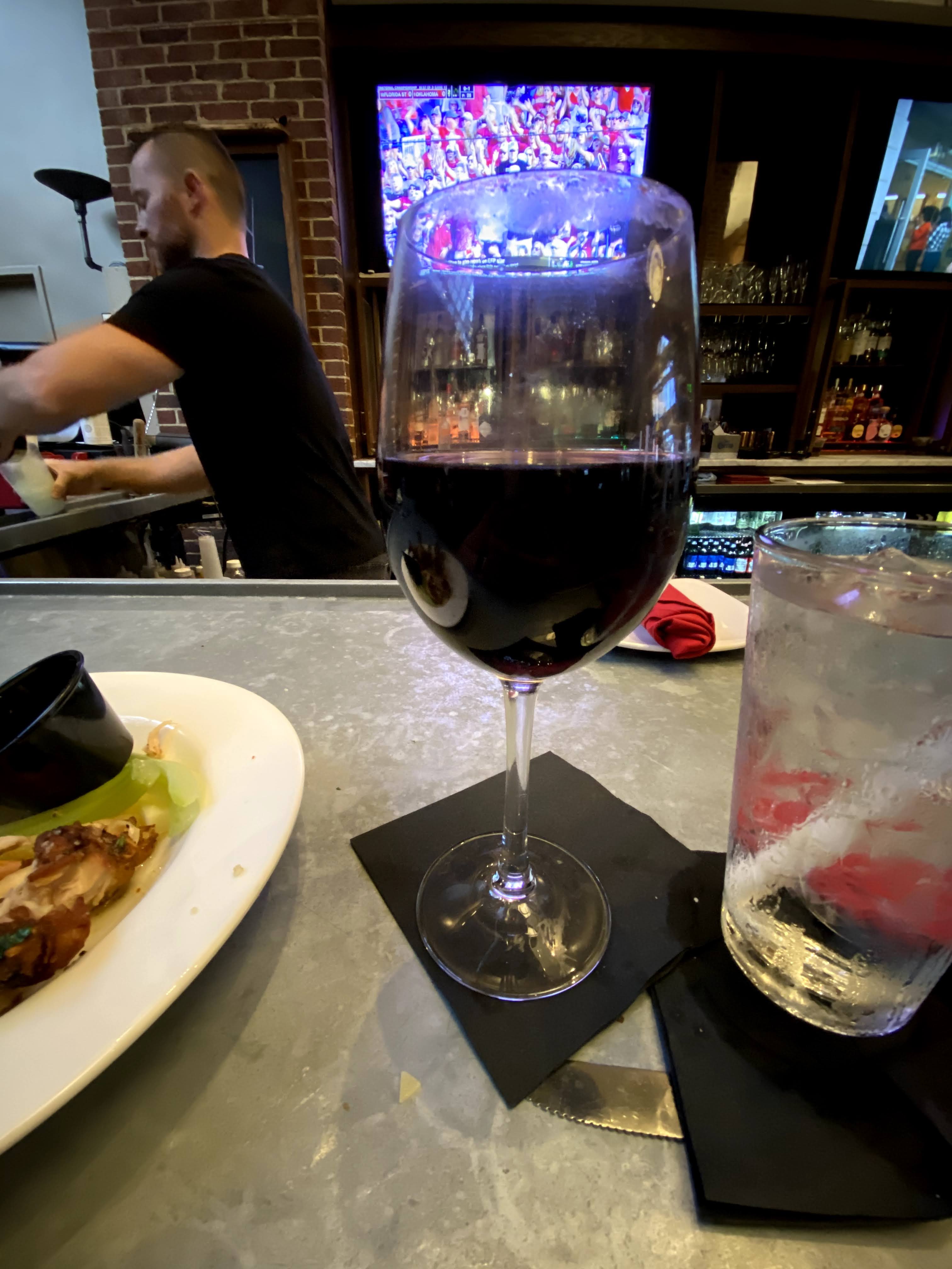 After 5 hours on the train, it was time to hop off at the Downtown Raleigh stop. I was only here for a night and my hotel was only a few blocks away. It was a very sleepy/quiet downtown for a Tuesday evening. I ended up calling an Uber, mainly because it was hot and I did not want lug my suitcase around. I checked into the Sheraton and it was very quiet but clean inside. The hotel room was nice and I had plenty of space if I was going to stay another night to work. Soon enough, it was time for dinner. I thought it would be fun to walk around the town, but honestly, I was so tired. I ended up eating at the hotel restaurant, Jimmy V’s Osteria Restaurant and Bar. A glass of red wine and some wings for dinner.. the bartender had recommended the wings. I sat at the bar and the bartender had mentioned they had just reopened! Ooops, on my part, for not actually researching the restrictions of each city. What was supposed to be a one glass of wine and go back into my room, ended up being a somewhat late night with some people travelling for work. Thanks to those people for keeping me company and the bartender for always making sure my wine glass was full!